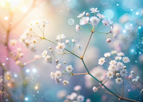 Double Exposure Floral Photography: Delicate White Flowers Blooming Stem - Surreal Nature Image