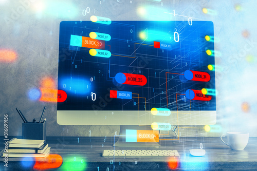 Double exposure of computer and technology theme hud. Concept of innovation.
