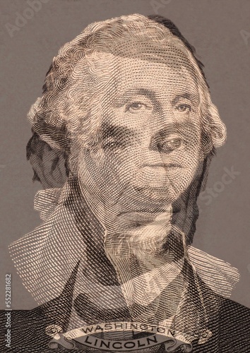 Double exposure of Portrait of U.S. president Abraham Lincoln and George Washington
