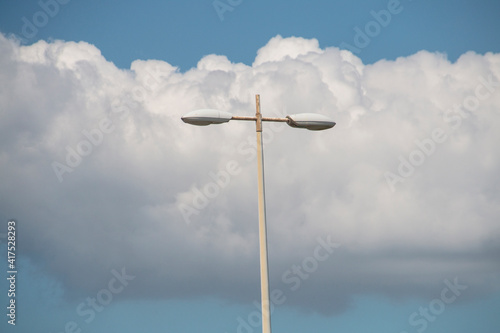 white, background, object, steel, design, illumination, high, technology, city, urban, day, street, power, electric, lantern, post, lamp-post, energy, metal, equipment, light, electricity, pole, blue, sky, street light, street light, lamp, cloudy