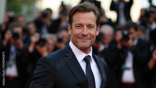 actor, film festival, red carpet, celebrity, portrait, closeup, event, premiere, man, male, suit, attaching, smiling, candid, entertainment, famous, performance, attendance, personality, success, professional, stylish, elegant, lifestyle, face, head shot, caucasian, one person, human, adult, middle-aged, portraiture, daytime, people, well-dressed, media, photographer, press