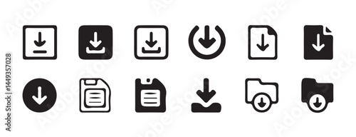 download folder icon, file document import icon sign with arrow down.Downloading file icon set on black and white design. vector illustration eps 10.