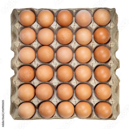 Dozen chicken eggs in carton box on white background, Eggs in cardboard box on White PNG File.