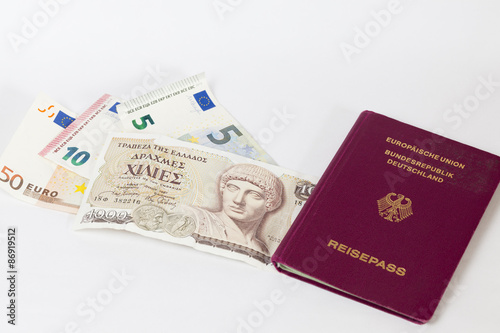 Drachmen, Euros und Reisepass