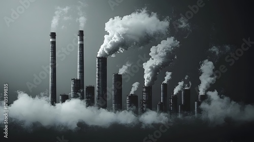industrial, smoke, pollution, environmental, industry, factory, chimney, smokestack, pipe, emission, steam, haze, fog, cloud, manufacturing, plant, energy, power, production, technology, architecture, structure, infrastructure, ecological, smog, atmosphere, climate, global, warming, dark, black, white, monochrome, greyscale, vintage, retro, dramatic, serious, impact, danger, threat, heavy, dense, sky, background, silhouette, concept