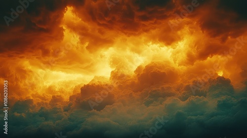 Dramatic clouds illuminated by vibrant orange and yellow hues.