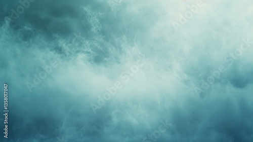 Dramatic Cloudscape: Teal Abstract Sky Texture Background. Ethereal Sky, Dreamy Clouds, Weather, Tranquility