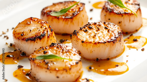 scallop, seafood, epicure, dish, eatery, culinary, food, meal, cooking, grilled, presentation, garnish, high contrast, lighting, tasty, appetising, chef, plate, elegance, delicious, dining, fine dining, cookery, fresh, protein, ingredient, dinner, healthy, favor, black pepper, sauce, drizzle, serve, texture, seasonal, elegant, aesthetic, closeup, high-quality, vibrant, colours, receipe, preparation, kitchen, culinary arts