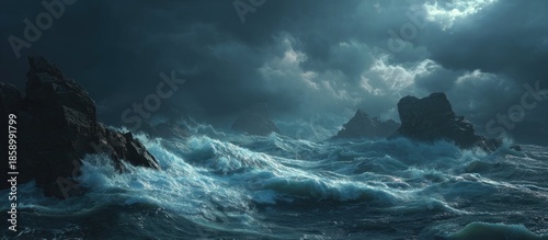 ocean, wave, storm, water, sea, rock, sky, cloud, dark, blue, coast, shore, weather, nature, stormy, landscape, powerful, movement, rough, surge, crash, oceanic, environment, natural, dramatic, overcast, grey, turbulent, seascape, wind, horizon, day, scene, background, texture, abstract, wild, energy, element, beauty, scenic, illustration, art, photo