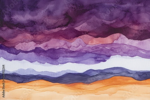 watercolor, painting, landscape, sunset, purple, mountain, hill, cloud, sky, art, abstract, texture, background, design, illustration, graphic, image, vibrant, colourful, nature, scenery, dramatic, moody, atmospheric, serene, calm, peaceful, beauty, artwork, creative, artistic, fantasy, surreal, digital artwork, purple sky, hand-painted, fine art, modern art