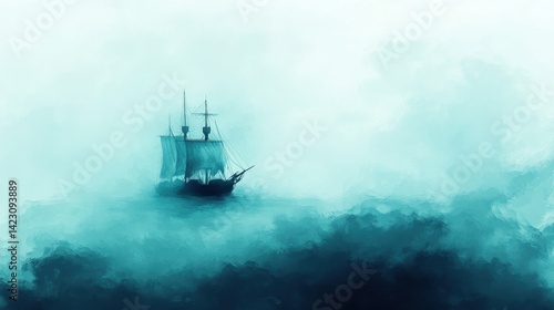 Dramatic scene of a pirate ship braving the stormy ocean waves under dark and choppy skies with tension in the air