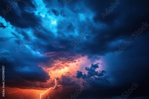storm, lightning, thunder, cloud, sky, weather, nature, dramatic, powerful, electricity, high-coloured, colours, dark, rain, cloudscape, storm cloud, lightning strike, dramatic sky, weather forecast, intense, lightning bolt, thunderstorm, stormy, violent, extreme, dangerous, hurricane, flash, natural disaster, atmosphere, dark clouds, orange, blue, red, colours, light, energy