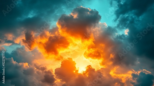Dramatic Sunset Cloudscape Fiery Orange Hues Dark Teal Sky