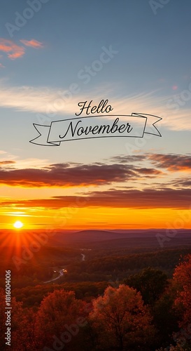 sunset, sky, orange, cloud, landscape, nature, horizon, sunlight, dawn, evening, scenic, beautiful, view, colourful, environment, peaceful, outdoors, daylight, gold, vibrant, serene, natural, light, atmosphere, climate, silhouette, forest, tree, season, beauty, background, wide, earth, summer, sun, colours, texture, travel, tour tourism, inspiration, banner, text, hallo, november