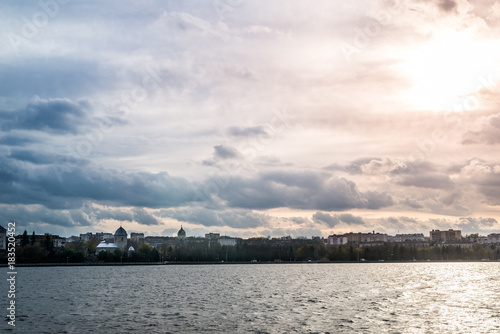sky, sunset, sun, cloud, sunrise, dramatic, water, lake, evening, orange, twilight, nature, red, landscape, blue, magic, dusk, mirror, sea, colours, fantasy, dawn, bright, light, sunshine, cloudscape, beautiful, skyline, travel, sunny, wave