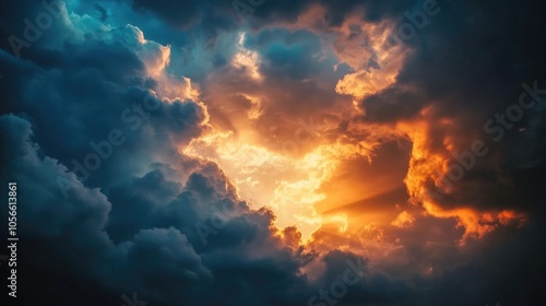 Dramatic sunset sky with dark cumulus clouds Atmospheric backdrop
