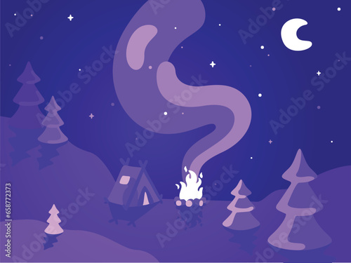 camp, fire, flat, tent, icon, campfire, night, vector, star, wood, background, forest, balefire, design, sky, summer, travel, nature, tree, illustration, grass, landscape, concept, poster, cloud, smoke, retro, green, black, moon, graphic, vacation, doodle, holiday, adventure, natural, hiking, season, tour tourism, fir, spruce, firewood, recreation, leisure, expedition, journey, info, rest