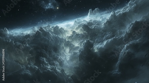 Dreamlike Celestial Nebula Cloud with Glowing Stars in Deep Universe Night Sky