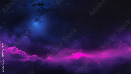 cloud, star, night, purple, blue, sky, dream, space, galaxy, nebula, atmosphere, celestial, dark, light, vibrant, scene, cosmic, outer, abstract, background, art, fantasy, nature, landscape, twilight, evening, magenta, illumination, scenery, artistic