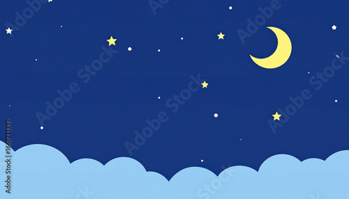 Dreamy Night Sky Moon, Stars, and Clouds in a Peaceful Blue Cartoonscape