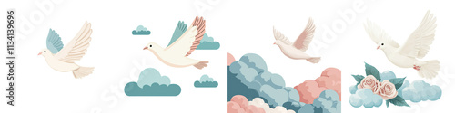 Dreamy of Graceful Birds in Flight Among Soft Pastel Clouds and Sky Ethereal and Peaceful Minimalist Nature Scene