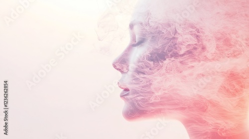 dreamy, haze, face, profile, side, aethereal, mist, smoke, soft, abstract, surreal, calmness, beauty, calm, feminine, artistic, creative, portrait, depth, light, shadow, emotion, expression, peaceful, gentle, texture, visual, design, soft focus, warm tones, harmony, bliss, mystery, contemplative, serenity, elegance, dreamlike, imagery, aesthetic, modern, innovative, unique, facial features