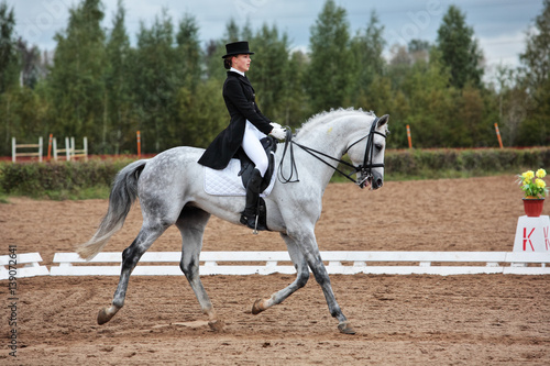Dressage horse and woman rider - extended trot