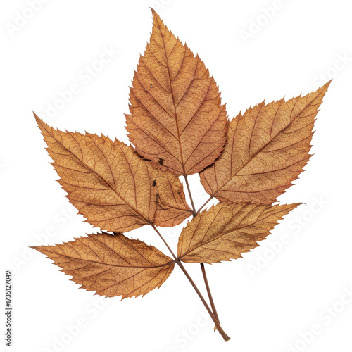 Dried autumn leaf cluster detailed veins and texture isolated on white background