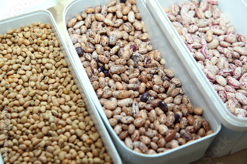 Dried bean, pattern background, top view . lead paper . Anasazi kidney bean background.