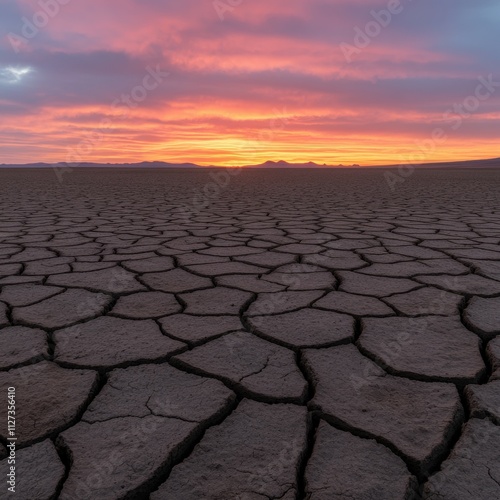 sunset, desert, cracked, earth, landscape, colourful, sky, dry, land, nature, evening, mountain, horizon, serene, geology, scenery, arid, dusk, beauty, terrain, dramatic, natural, outdoors, environment, scenic, twilight, pattern, wilderness, calmness, light, weathering, climate, formation, environmental, change, geologic, feature, colours, silhouette, peaceful, view, sun, setting, vibrant, expansive, immensity, warm, atmospheric, visual