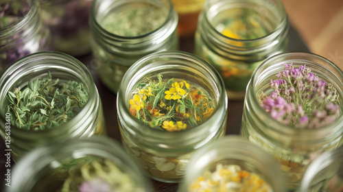 Dried Herbs and Wildflowers in Glass Jars