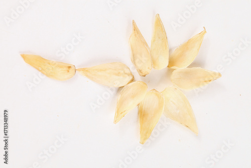 Dried lily bulb petals arranged in star pattern - traditional Chinese herbal medicine ingredient on white background