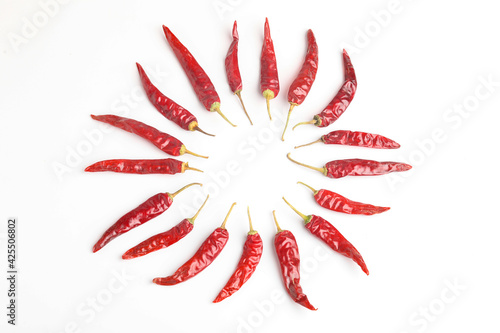 Dried red chilli on white background