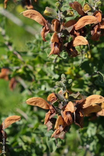 Dried Seed Pods on Green Foliage
