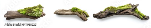 Driftwood pieces adorned with moss