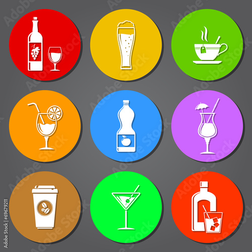Drink flat icons set