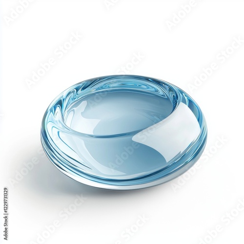 droplet of clear water with realistic reflections and soft shadows, isolated on a bright white background