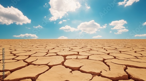 earth, climate, change, dry, fractured, blue, sky, puffy, cloud, highlight, global, geology, landscape, barren, greenhouse, rainfall, use, practice, weather, impact, carbon, pollution, condition, seasonal, human, planet, resilience, arid, terrain, desert, reserve, pattern, scenery, footprint, habitat, damage, resource, nature