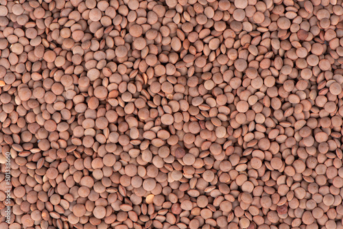 Dry Organic Brown Lentils against on white background Healthly food Legumes