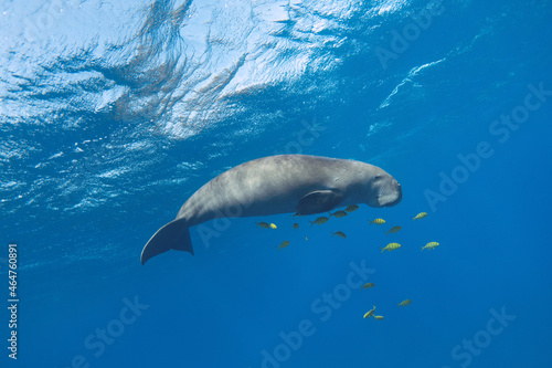 Dugong in the blue sea underwater. Sea cow (Dugong dugon)