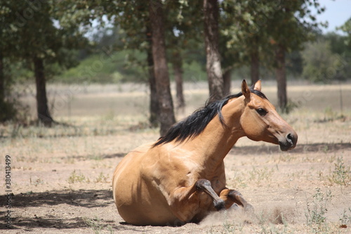 Dun Horse Laying Down