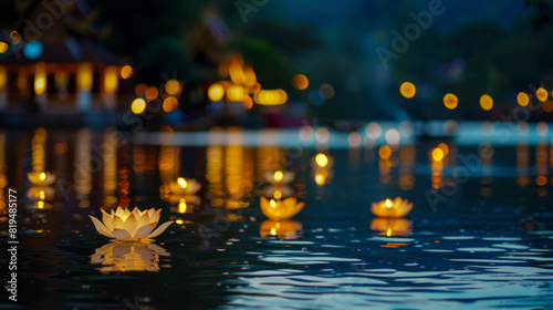 festival, lotus, lantern, float, river, enchanting, water, night, illumination, glow, celebration, tradition, culture, event, oriental, asian, symbol, spiritual, ritual, ceremony, atmosphere, tranquil, calm, peaceful, dark, serene