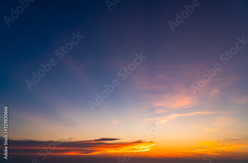 Dusk,Sunset sky twilight in the evening over sea with colorful sunlight and dark blue,majestic ​sky.