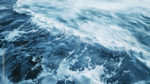 Dynamic blue ocean scenery with foamy waves, conveying power and freshness