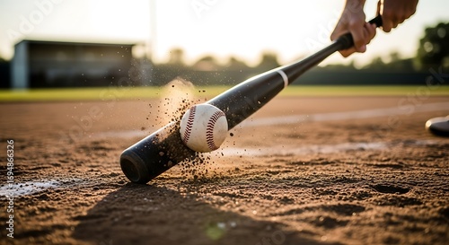 Dynamic Close-up Action Shot Capturing a Baseball Hitting a Bat During a Game on a Sunny Day