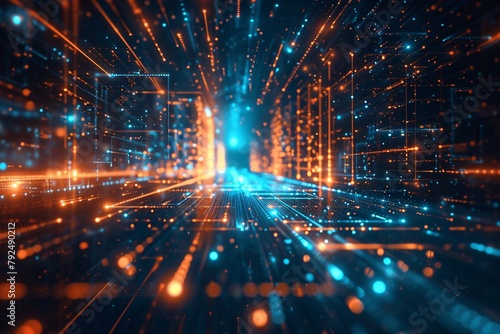 datum, particle, digital, tunnel, glowing, high speed, data transfer, connectivity, blue, orange, cyber, technology, virtual, futuristic, network, communication, bandwidth, cyberspace, tech, fiber-optic, coding, binary, abstract, innovation, stream, computing, matrix, science fiction, energy, transmission