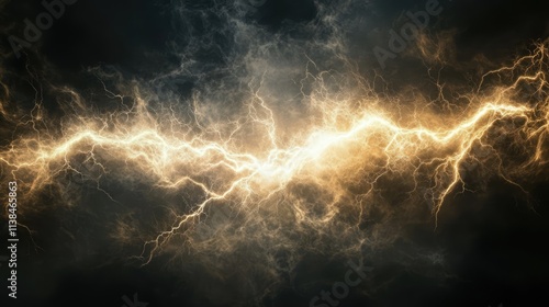 Dynamic electrical lightning flashes against a dark atmospheric backdrop creating a sense of mystery and power in the imagery.