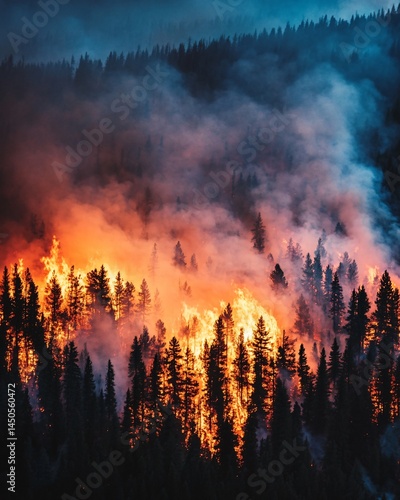 Dynamic forest fire action wilderness area nature photography dramatic environment aerial viewpoint climate change awareness