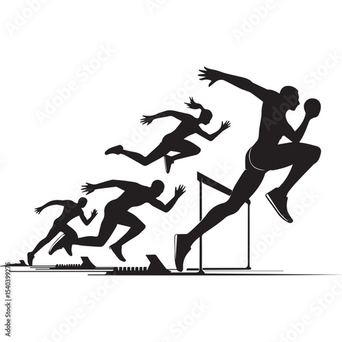 Dynamic Silhouettes of Runners Hurdling Obstacles in a Thrilling Race Competition