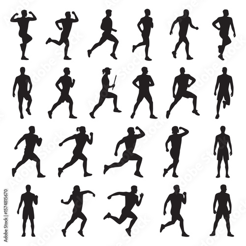 running, athlete, sport, exercise, silhouette, motion, activity, fitness, jogging, race, marathon, sprint, male, female, health, training, runner, action, movement, speed, energy, pose, figure, human, illustration, graphic, design, active, healthy, person, athletic, competition, physical exercise, run, body, shape